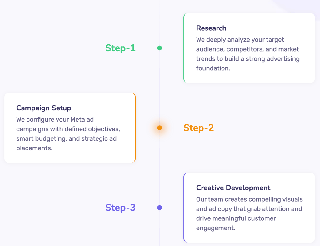 We follow a strategic process to create high-performing Meta Ads that drive measurable results.